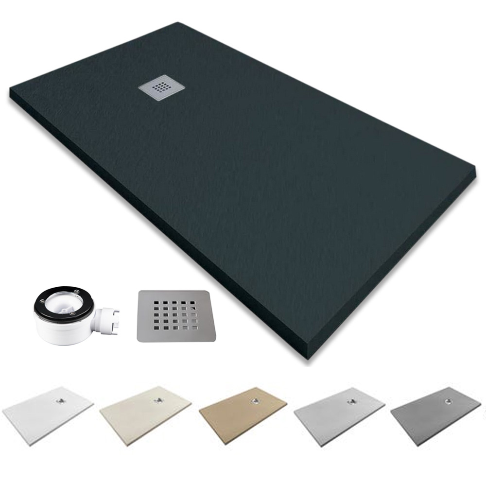 Iowa Plato de Ducha de Resina Extraplano Antideslizante | Válvula de Desagüe y Rejilla | Pizarra Suave | Antracita