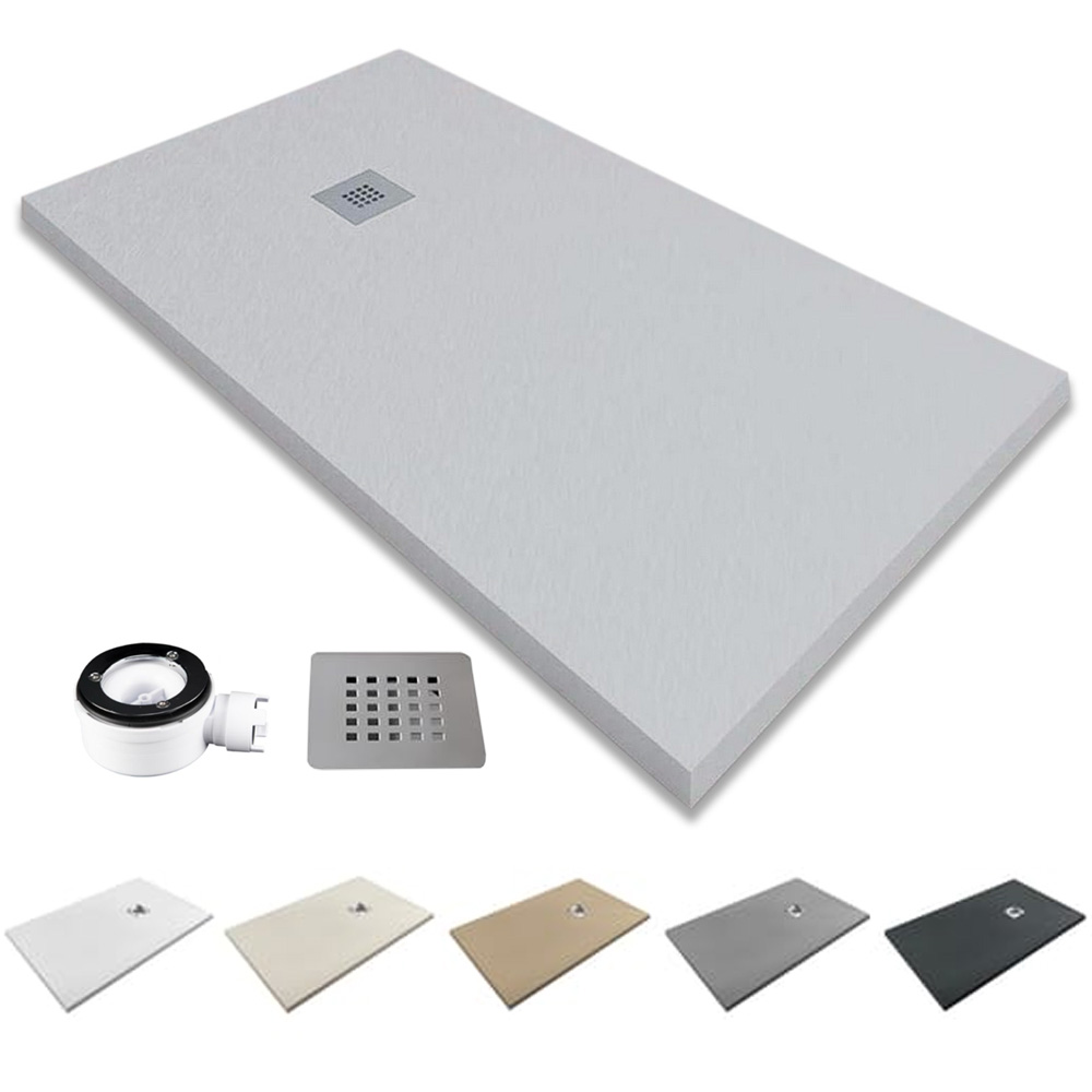 Iowa Plato de Ducha de Resina Extraplano Antideslizante | Válvula de Desagüe y Rejilla | Pizarra Suave | Gris Perla