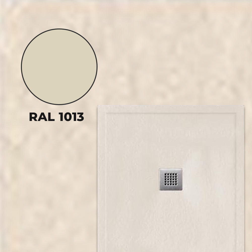 ✅Plato ducha resina con borde beige en TEXTURA Piedra disponible en color Blanco, Beige, Antracita y Mist (Gris cemento).