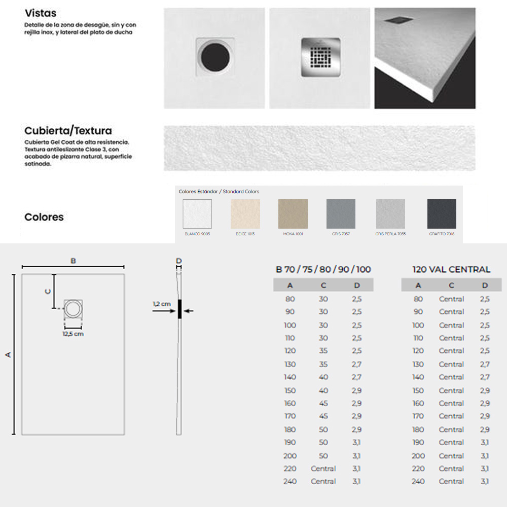 | Ancho Plato de Ducha | 100cm, 70cm, 80cm, 90cm |