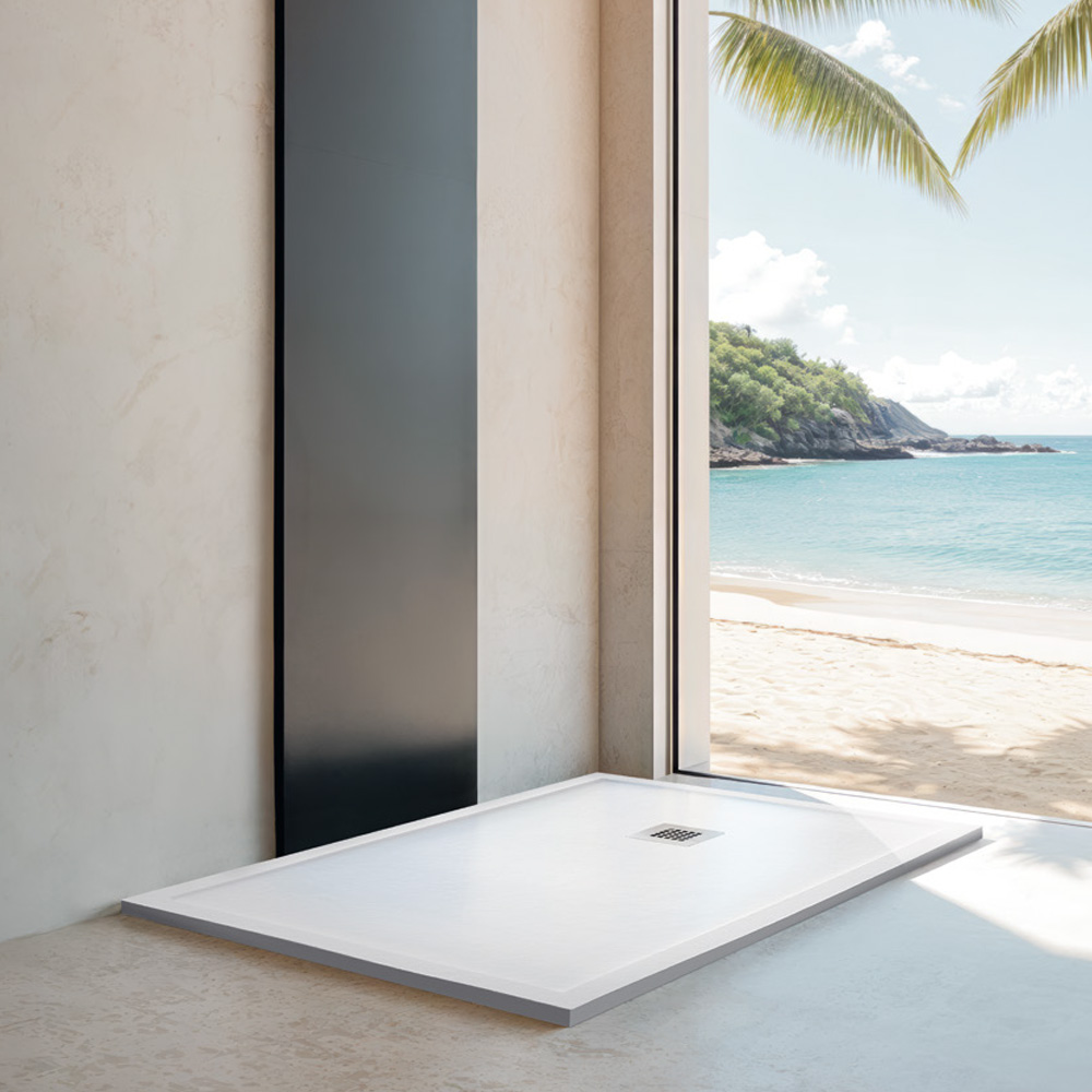 ✅ 100% CALIDAD. Plato de Ducha de Resina con Borde Modelo Arizona de RESINA y Carga Mineral recubierto de Gel Coat sanitario Antibacteriano de última generación.
